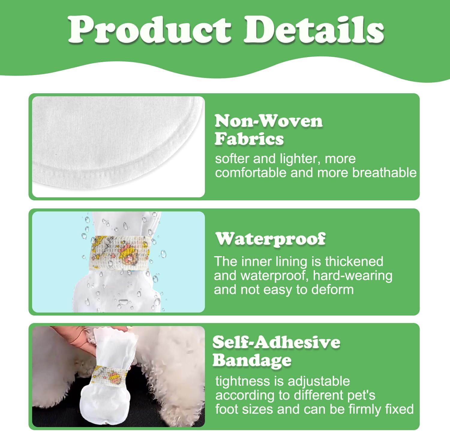- 【Waterproof & Dirt-Proof Paws Protection】Keep your pet's paws clean, dry, and safe with our disposable pet foot covers. Made from white waterproof non-woven fabric, these dog foot covers are the ultimate mess-free solution for outdoor walks, rainy days, or muddy trails. Perfect for pets weighing 15-50 lbs/ 6-23 kgs, they provide a hygienic barrier against dirt, water, and germs, ensuring your pet stays healthy and comfortable.