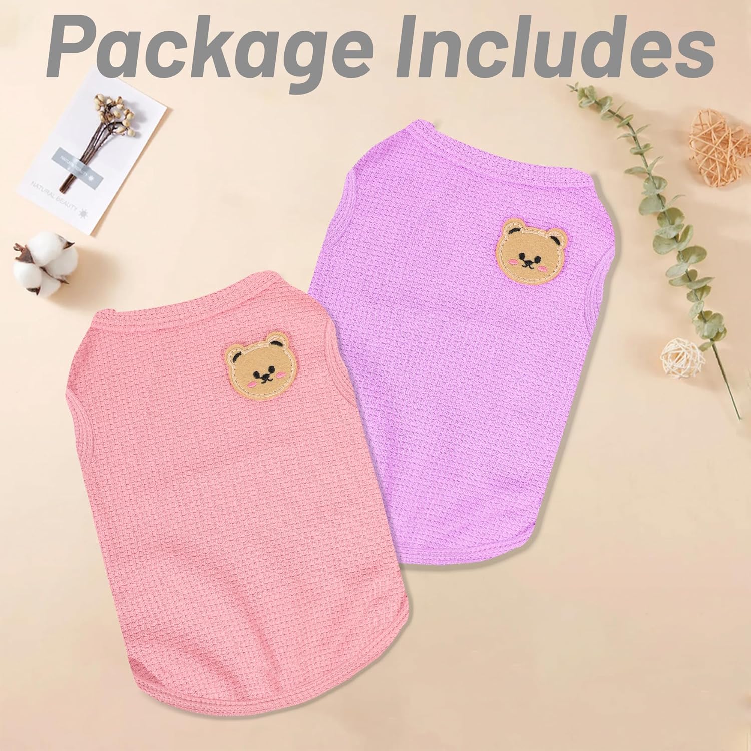 Dog Shirt Sleeveless Puppy Tank Top Designed Fog Small Dog Breeds Like Yorkie & Puppies, Waffle Fabric, 2-Pack Cute Pet Apparel, Pink and Purple XXS